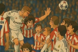 体育资讯4月4日讯 拉莫斯更新社媒动态,晒出93分钟绝平马竞的AI漫画图片。