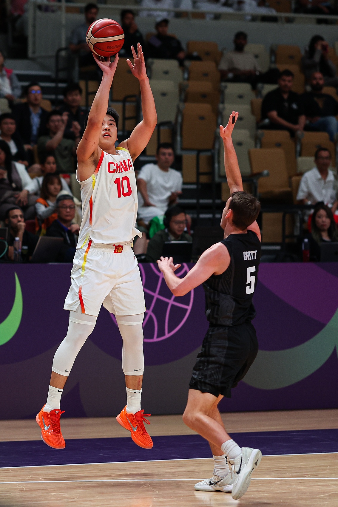 三分球26投12中、罚球22罚20中的稳定表现令人安心,精准的外线投射迫使新西兰频繁调整防守策略。当对手采用人盯人时,赵睿、胡金秋等球员在下半场完全掌控了比赛节奏。